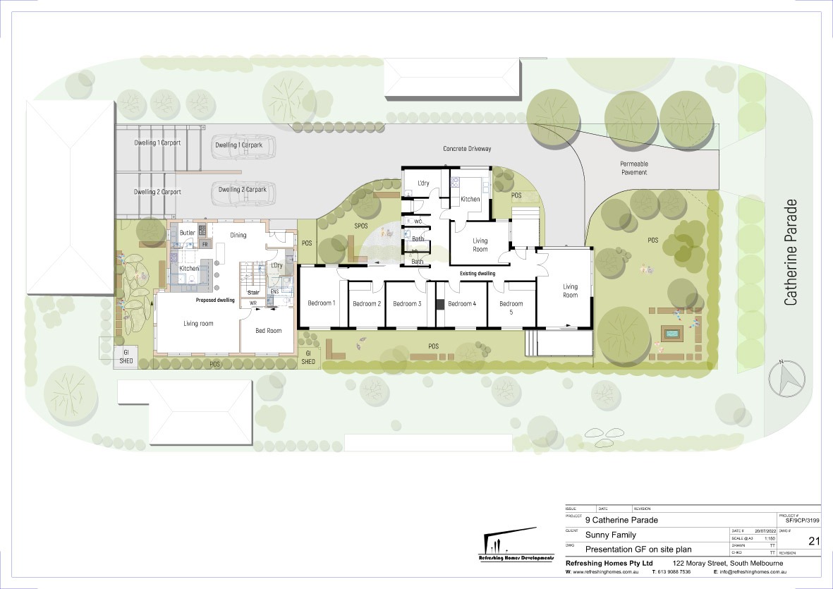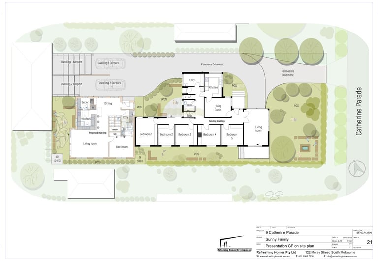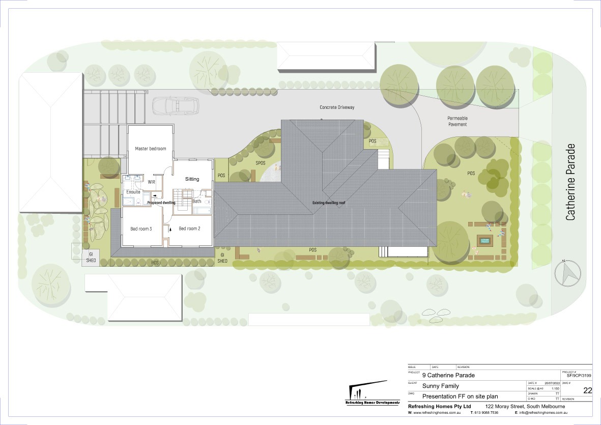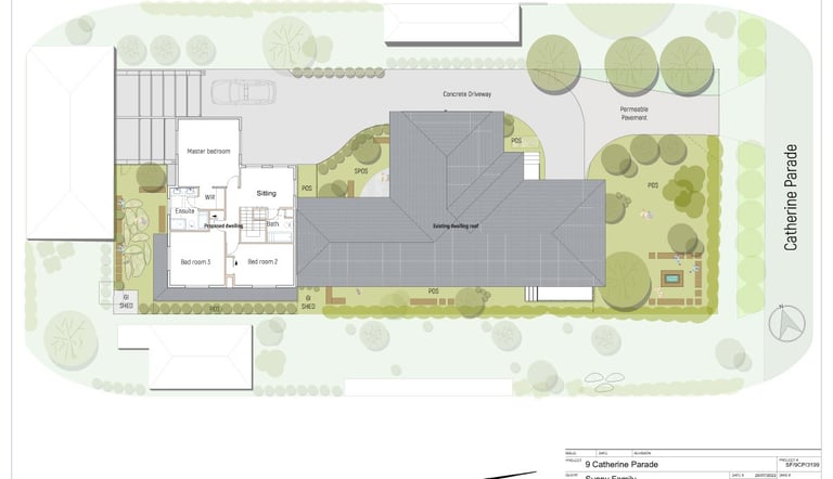 Catherine Parade is a clear demonstration of our design capability. Despite a tight site and a large existing home, we leveraged the permeable paving requirements for tree growth as an opportunity to improve traffic safety and satisfy every Council concern. The outcome was a smooth approval for a brand-new four-bedroom dwelling at the rear, with minimal alterations to the existing house—delivering an efficient project and a strong financial return.